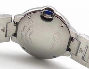 カルティエ藍風船透き通るサファイア鏡面、魚眼効果太陽放射表面経典紋、ドリルと釘目盛手作り焼き鋼藍針をちりばめ
